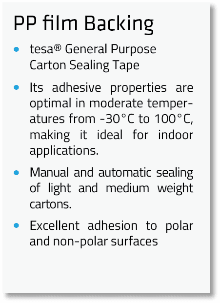 • The tesa packaging tape range provides outstanding sealing strength and great performance and has been designed to meet your every need.