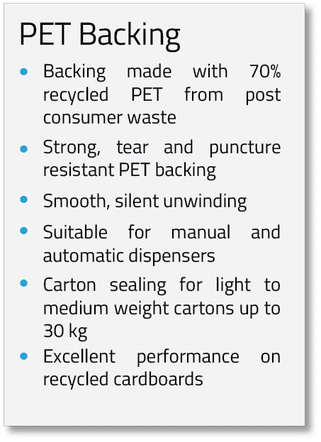 • Our more sustainable packaging tapes are just as strong as standard sealing tapes and offer the same reliable performance. Switching from normal to more sustainable packaging tape can be a small but important step towards a more eco-conscious business strategy.