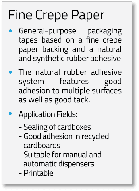 • Whether for a light or heavy carton, traveling a short distance by rail, or taking a long journy by ship - our range of packaging tapes meets all the requirments of modern logitics.
