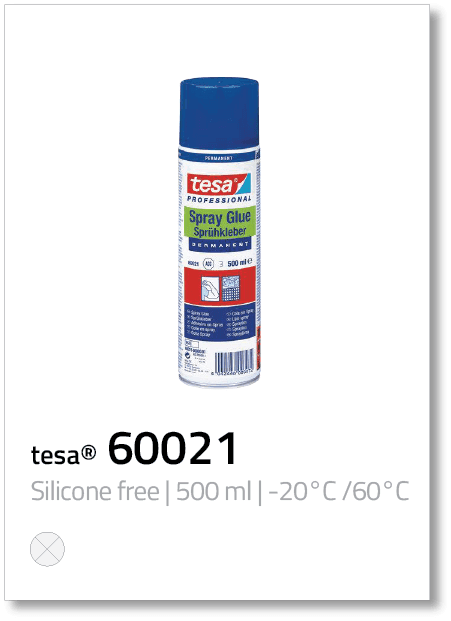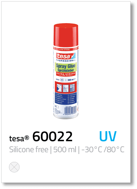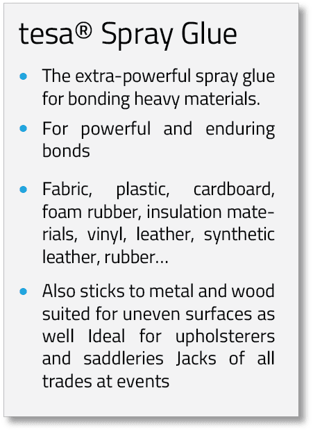 • tesa® spray glues are ideal adhesives for bonding large surfaces cleanly, economically, safely, and quickly.