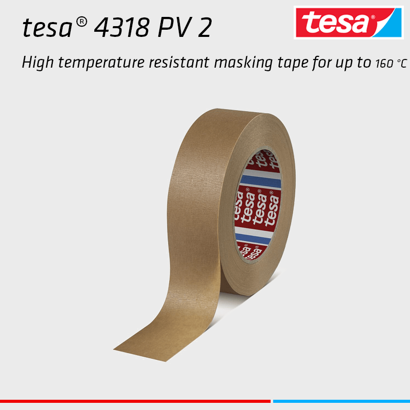 - tesa® 4318 PV2 is a high temperature resistant masking tape for up to 160°C.