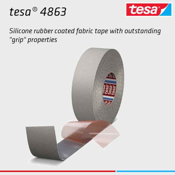 - tesa® 4863 Silicone rubber coated fabric tape with outstanding “grip” properties